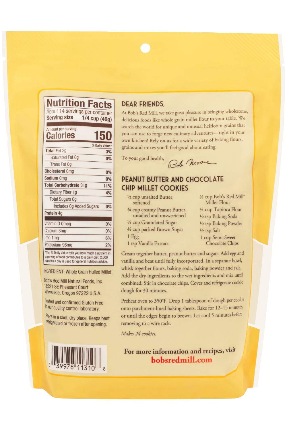 Amazon Com Bob S Red Mill Millet Flour Gluten Free Whole Grain Flour 20 Ounce Resealable Pouch Pack Of 2 Grocery Gourmet Food